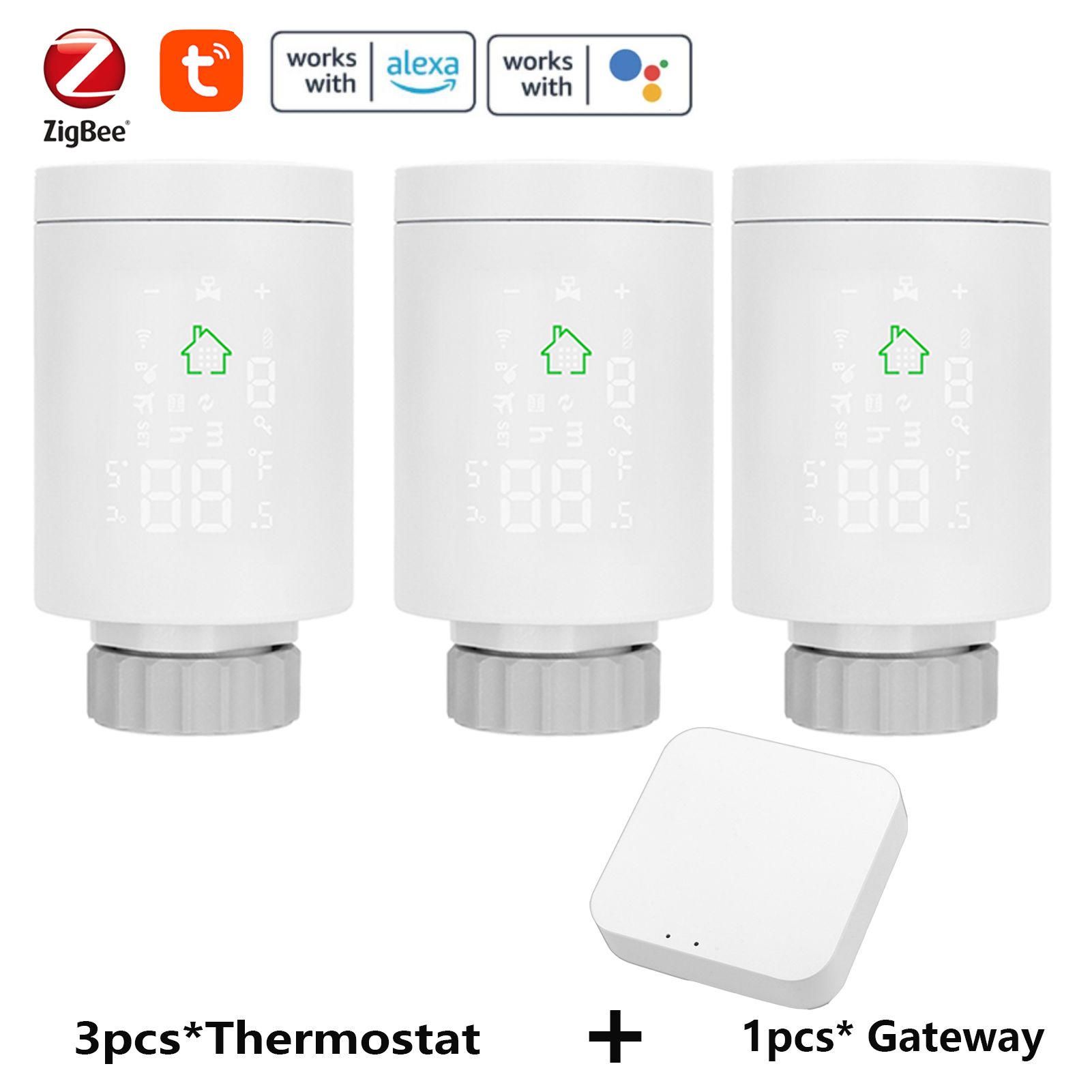 actionneur de radiateur Intelligent,vanne de radiateur thermostatique Programmable,contrôleur de température,commande vocale thermostaat thermostat connecté termostato tuya - Type with 3 Controller