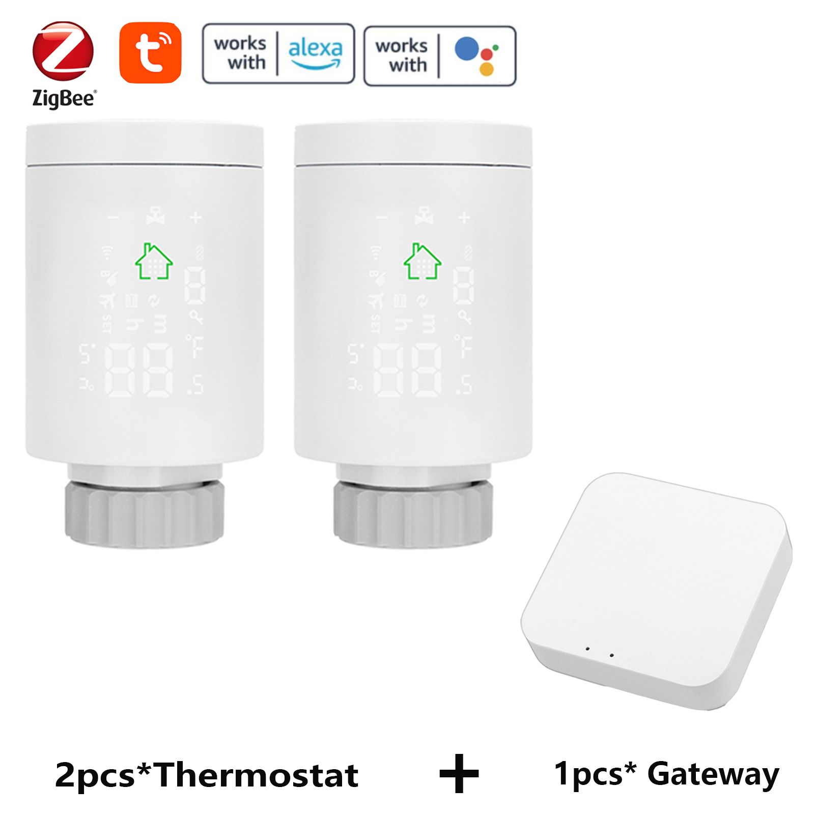actionneur de radiateur Intelligent,vanne de radiateur thermostatique Programmable,contrôleur de température,commande vocale thermostaat thermostat connecté termostato tuya - Type with 2 Controller