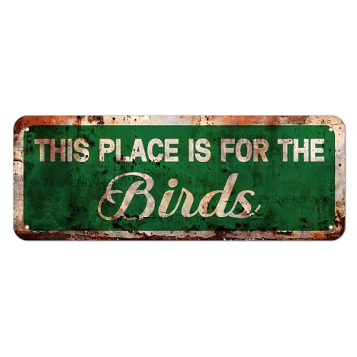 Plaque en métal vintage « This Place is for The Birds » de 10,2 x 40,6 cm - Décoration murale pour chambre à coucher, cuisine, jardin, pub, club, café