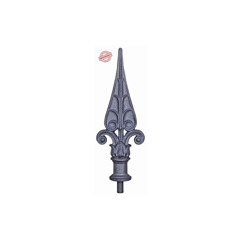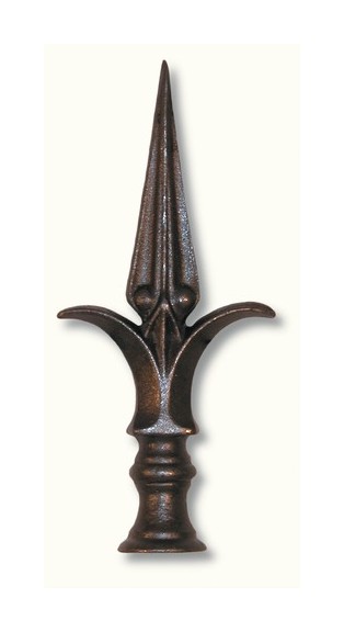 Pointe de lance sophistiquée - Hauteur 215mm largeur 98mm base ronde pleine Ø38mm - Fonte avec tige en acier - à souder Deco Fer Forge