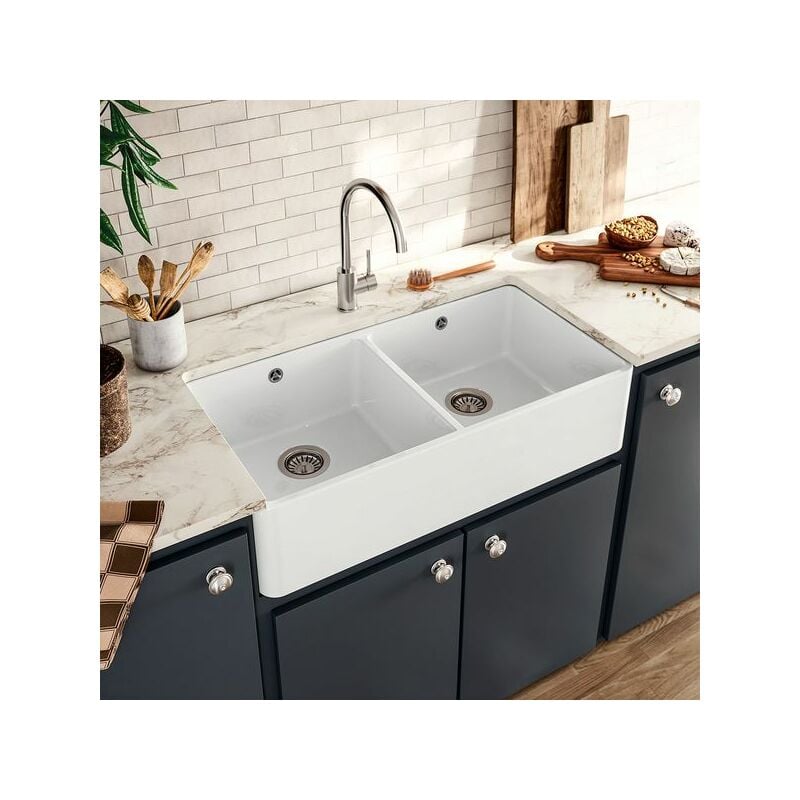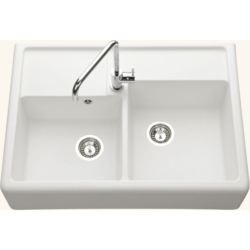 Evier Céramique Timbre d'Office Belfast 2 Bacs Blanc