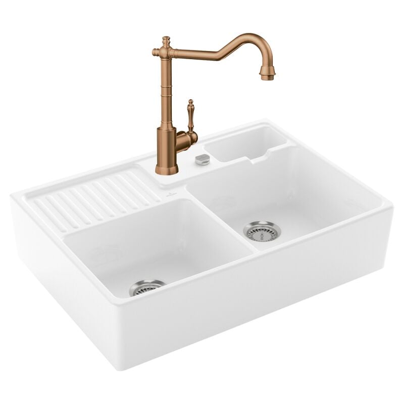 Evier VILLEROY ET BOCH Timbre d'office Tradition 2 bacs vidage auto + Robinet de cuisine Avia 2.0 Bronze