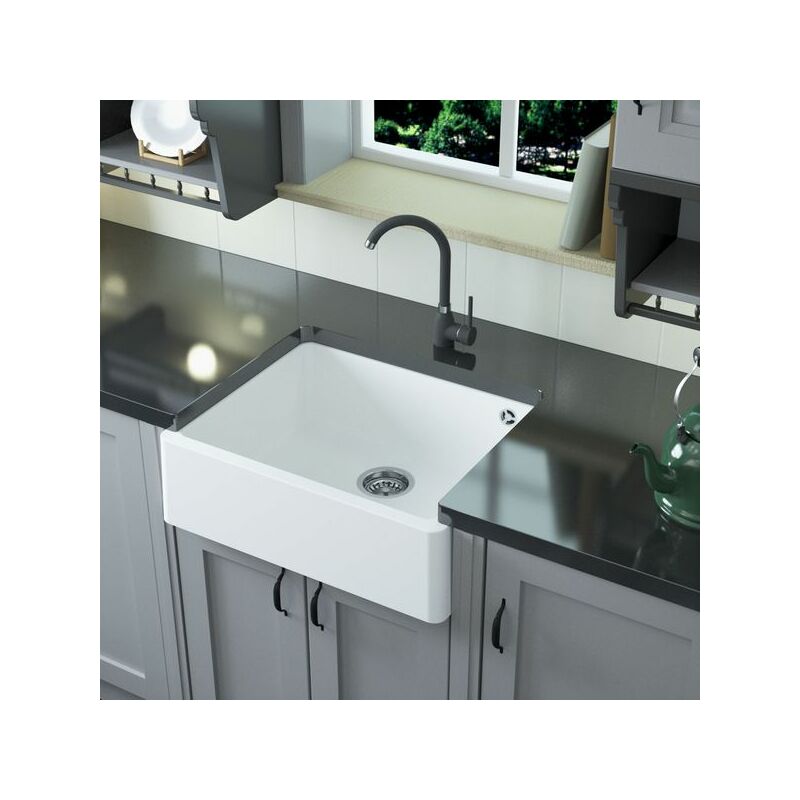 Évier timbre d'office céramique blanc ALBERT 1 bac