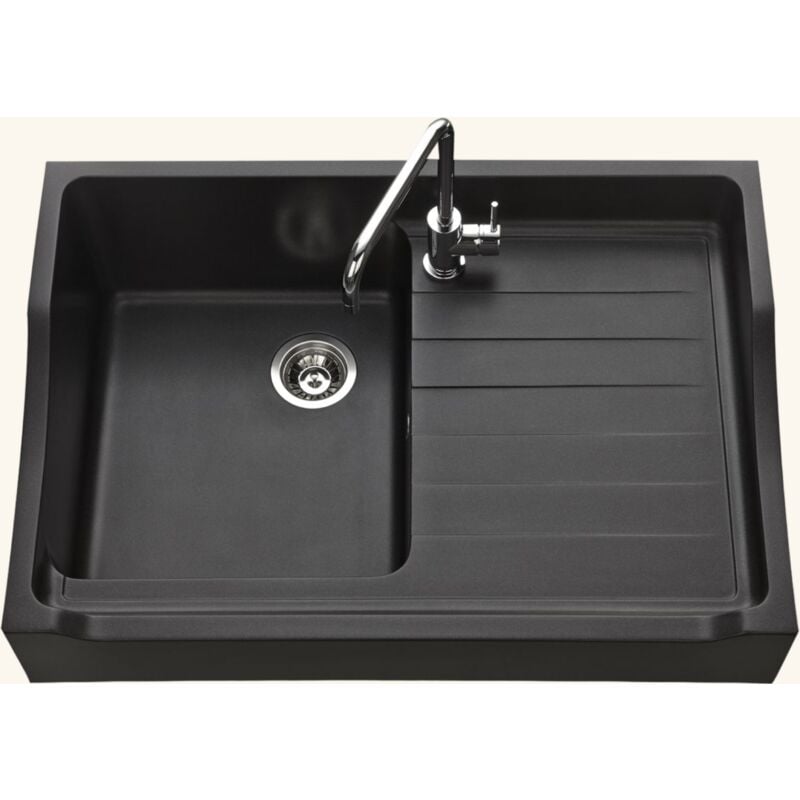 Évier timbre d'office granit Schock LARGO noir magma 1 bac 1 égouttoir
