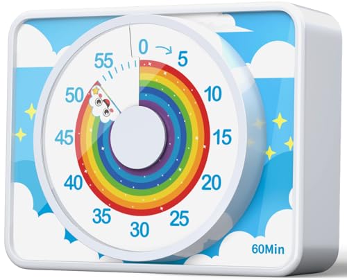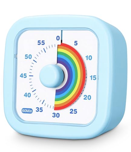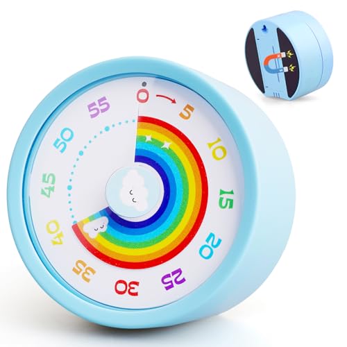 Cexovo Minuteur Visuel Timer 60 Minutes Outil de Gestion du Temps Compte à Rebours Silencieux, Motif Arc-en-Ciel, pour Enfants et Adultes,Salle de Classe, Devoirs, Cuisine, Bureau, Réunions (Bleu)