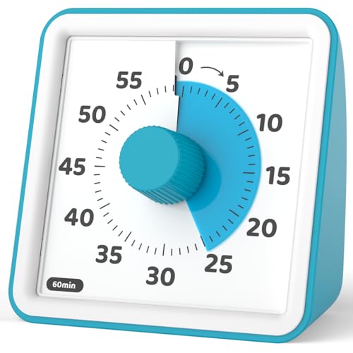 LIORQUE Minuteur Visuel Timer Enfant, 60 Minutes Chronometre Enfant et Compte à Rebours pour Enfants et Adultes, Silencieux Outil de Gestion du Temps pour Cuisine, Salle de Classe, Réunions (Bleu)
