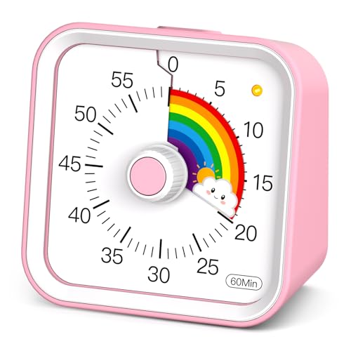 InfPokid Minuteur Visuel Timer Enfant avec Fonction Pause, Compte à Rebours de 60 Minutes Minuteur Enfant pour Salle de Classe, études, Silencieux Gestion du Temps pour Le TDAH (Rose Arc-en-Ciel)
