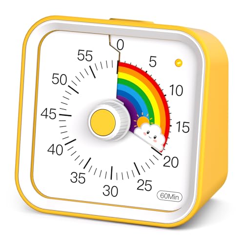 InfPokid Minuteur Visuel Timer Enfant avec Fonction Pause, Compte à Rebours de 60 Minutes Minuteur Enfant pour Salle de Classe, études, Silencieux Gestion du Temps pour Le TDAH (Jaune Arc-en-Ciel)