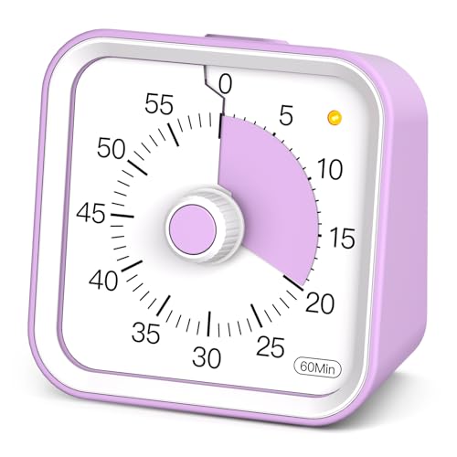 LIORQUE Minuteur Visuel Timer Enfant, 60 Minutes Silencieux Timer pour Enfants et Adultes, Pause et Housse en Silicone Interchangeable, Adapté pour la Classe, la Cuisine et le Bureau, Batterie(Violet)