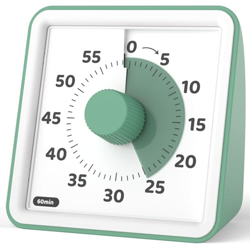 Mateju Minuteur Visuel Timer, Compte à Rebours de 60 Minutes pour Enfants et Adultes - Outil de Gestion du Temps pour Cuisine Bureau Salle de Classe Silencieux Réunions (Vert Avocat)