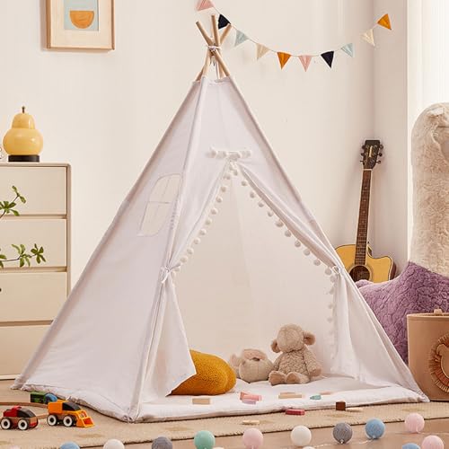 Tente tipi pour Enfants, Enfant Teepee Indien, Tente Enfant Interieur Exterieur Lavable pour Filles Garçons, Portable Maison de Jeu pour Garçons Filles Jeux D'extérieur (H, 1.1CM)