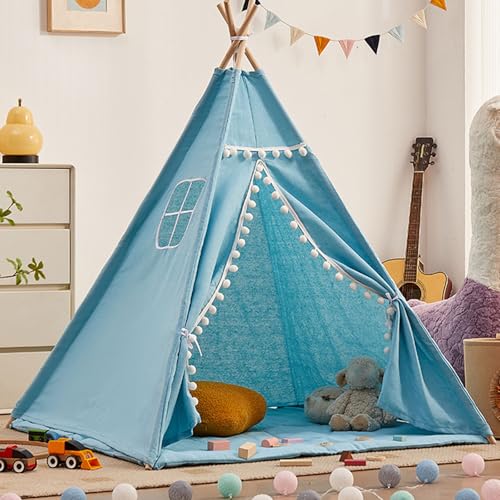 Tente tipi pour Enfants, Enfant Teepee Indien, Tente Enfant Interieur Exterieur Lavable pour Filles Garçons, Portable Maison de Jeu pour Garçons Filles Jeux D'extérieur (D, 1.1CM)