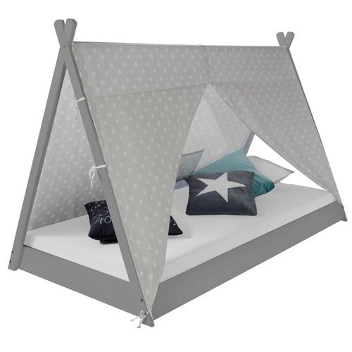 Homestyle4u Lit Tipi Enfant 90x200 Tissu Gris étoilé