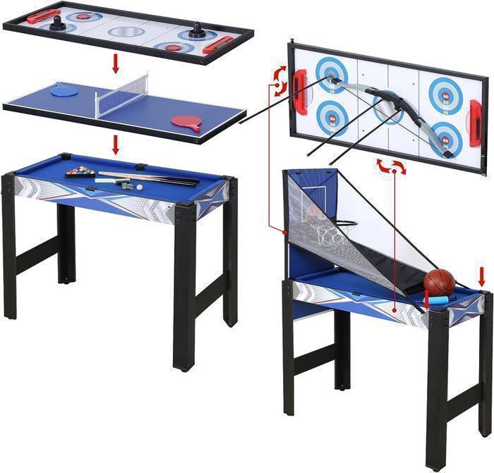 Table Multi Jeux 5 en 1 Enfant,Table De Pour Hockey Billard Basket Tennis de TableTir à larc Cadeaux Pour Enfants92x46x73cm