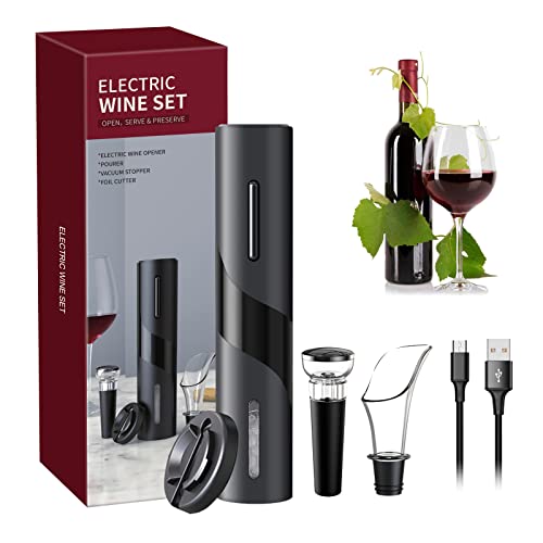 Tire Bouchon Electrique, 4 en 1 Coffret Cadeau avec Ouvre Bouteille Rechargeable, Aérateur de Vin Verseur Automatique, Coupe-Capsule et Bouchon à Vin sous Vide pour Idee Cadeau Homme