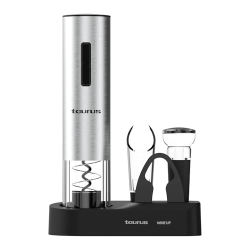 Taurus - Tire-bouchon électrique Wine Up sans fil | Débouchage 6-8 s | LED | Acier inox | Coupe-capsule, aérateur, bouchon vide d’air, socle, câble USB inclus