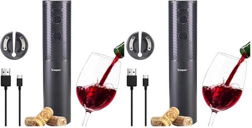 BEPER P102ACP103 Tire-bouchon électrique rechargeable USB, ouvre-bouteille à vin, avec coupe-capsule, pour bouchons en liège et synthétiques (Lot de 2)