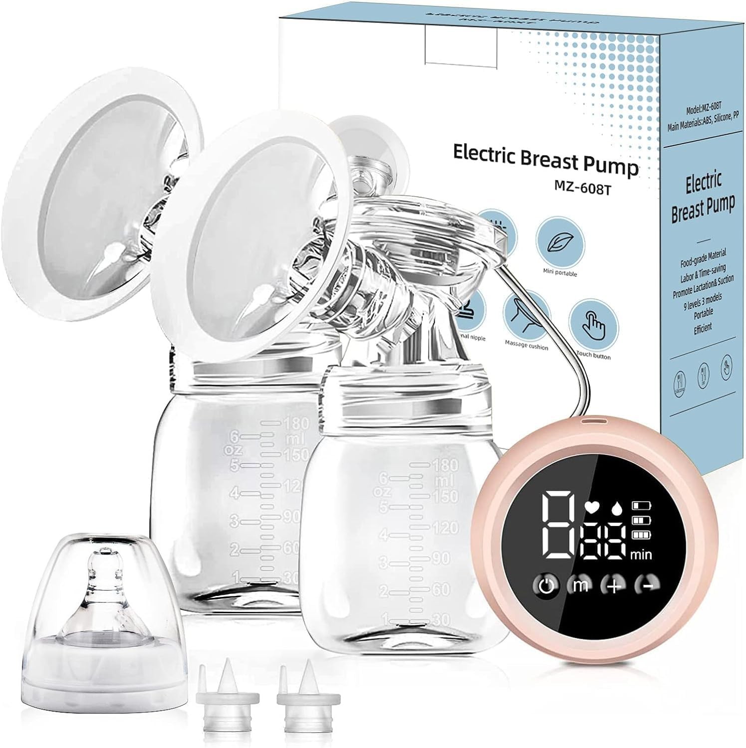 Emy Pump - Tire Lait Électrique Main Libre 6 tailles de Téterelles Incluses silencieux et discret Portable sans fil Autonome