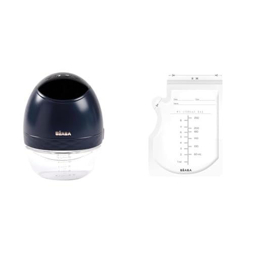 BÉABA, Lot 1 Tire lait electrique Mains libre et 50 Pochettes Conservation Lait Maternel, 3 Modes, 9 Niveaux, 0 Ondes, Silencieux, Minuterie, Fonction Mémoire, 6 séances, Charge USB C, Night blue