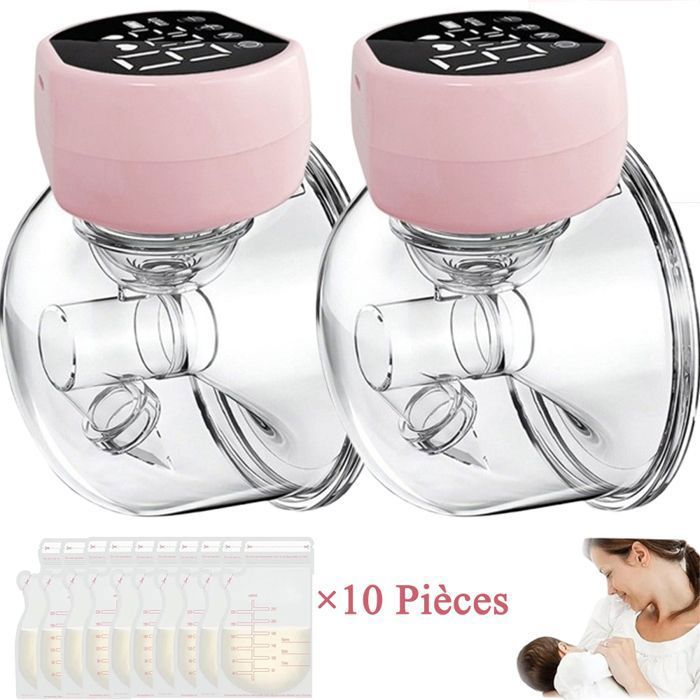 Tire Lait Electrique Main Libre 2 Pièces 3 Modes 27 Niveaux Faible Bruit Rechargeable Sans Fil Avec 10 Pièces sac de stockage lait