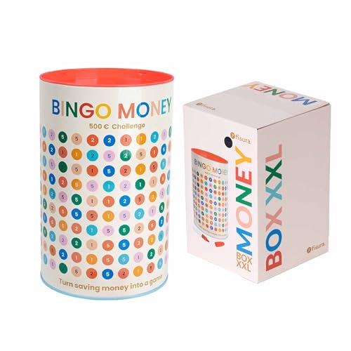 Fisura – Tirelire Originale pour Enfants Bingo Money. Tirelire Amusante pour Adultes. Boîte d'épargne avec marqueur. Tirelire en boîte Cadeau. Dimensions : 13 x 20 cm. Capacité : 500€