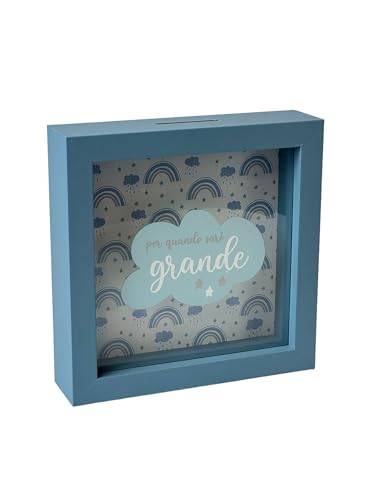 Tirelire pour Enfants, Style Nuage, 16 x 16 cm, Cadre Bleu avec Motif Arc-en-Ciel