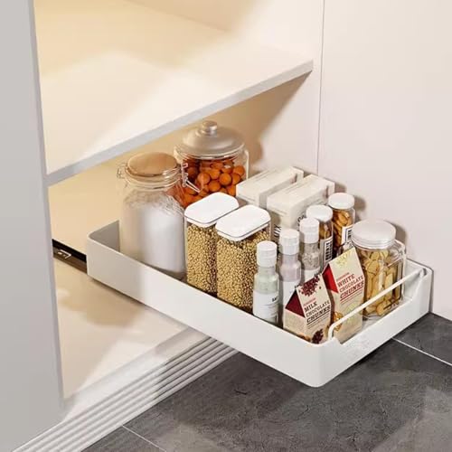 Homewell Blanc Armoire coulissante à 2 niveaux,Organiseur,Tiroir - Étagère à épices,Panier coulissant sous lavabo,Étagère de rangement pour plan de travail de cuisine, garde-manger,bureau