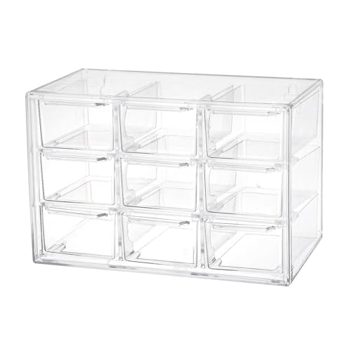 Liemuao Tiroirs de Rangement Empilables, Boite de Rangement Tiroir Transparent pour Petites pièces, Bijoux, Perles, Outils, Organiseurs Maquillage de Tiroir pour Coiffeuse et Bureau (9 Tiroirs)