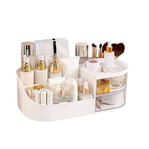 Boîte De Rangement Cosmétique Style Tiroir Coiffeuse Bureau Miroir Maquillage Produits Soins La Peau Rack Organisateur Rouge À Lèvres (Blanc crème,Petit : 26,5 * 14,5 * 10cm)
