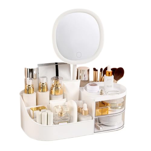 Boîte De Rangement Cosmétique Style Tiroir Coiffeuse Bureau Miroir Maquillage Produits Soins La Peau Rack Organisateur Rouge À Lèvres (Blanc,Grand : 33,5 * 19 * 12cm)