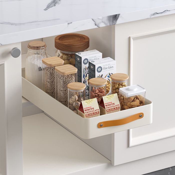 Tiroir coulissant sans perçage - Meuble de rangement de cuisine et armoire - Solution pour un accès facile - Installation adhésive - Design peu encombrant
