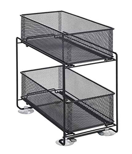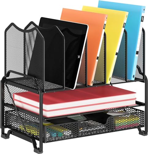 Simple Houseware Organiseur de Bureau en Maille avec tiroir Coulissant, Double Plateau et 5 Sections Verticales, Noir