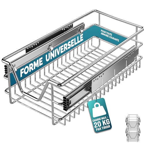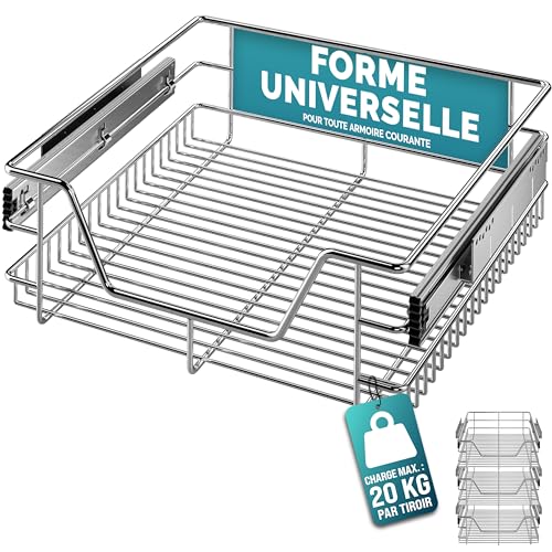 Organiseur de tiroir coulissant – Robuste – Tiroir coulissant de rangement pour armoire de cuisine – 55,88 cm de large x 53,34 cm de profondeur – Nécessite au moins un cadre métallique d'ouverture de