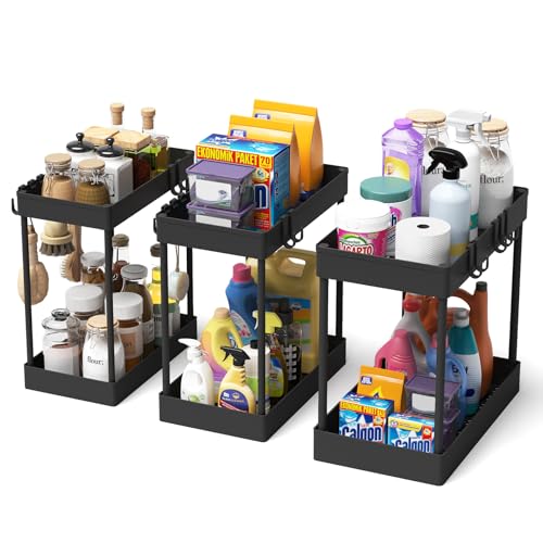 Meltrck - Lot de 2 Rangement sous Évier - Organisateur sous Evier Tiroir Coulissant à Extraction - Rangement Et Organisation De Cuisine (Noir, Lot de 3)