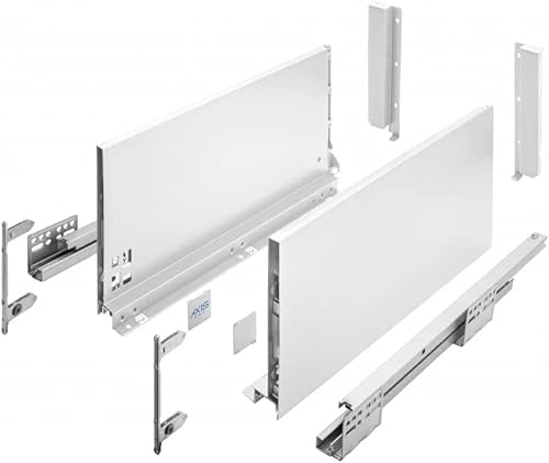 GTV - Système de Tiroirs Axis Pro, Ensemble de Tiroirs, Extraction Totale, Amortissement Intégré, Charge 40 kg, Tiroir Coulissant avec Fermeture Douce - Largeur 450 mm, Hauteur 168 mm, Blanc