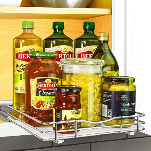 LYNK PROFESSIONAL® Étagère à épices coulissante pour intérieur d'armoires de cuisine – 26,4 cm de large – Tiroir coulissant – Étagère coulissante chromée pour armoire à épices – 1 niveau