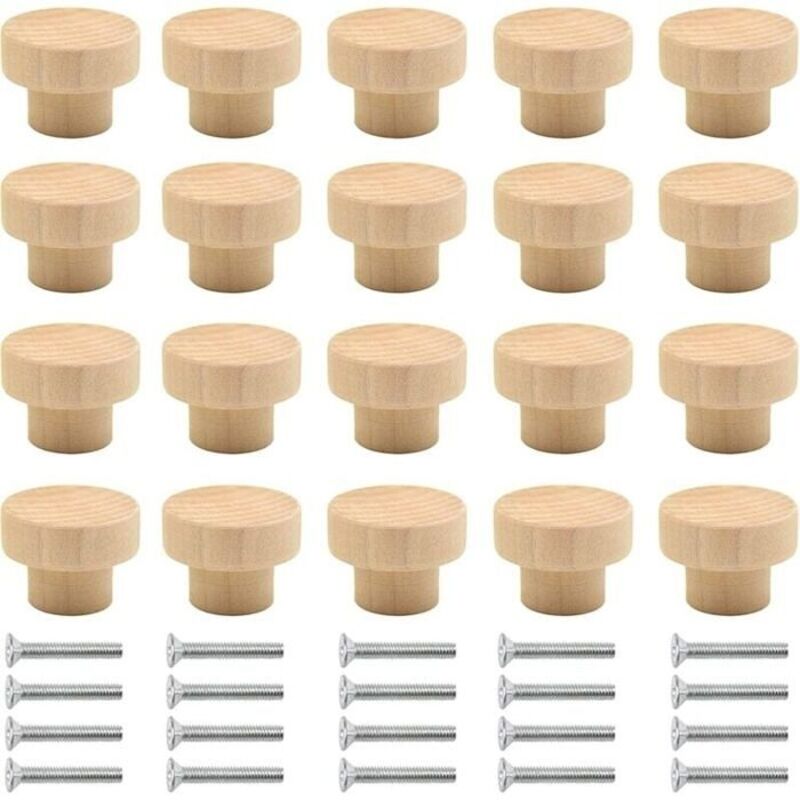 Lot de 20 poignées de placard en bois naturel rond pour placard, porte, tiroir, armoire, dressing, cuisine, etc. (couleur bois) - B