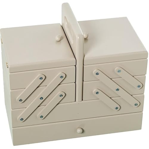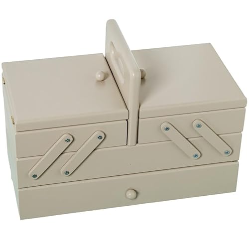 DRW Boîte à couture extensible type accordéon avec tiroir en bois couleur taupe 26 x 28 x 15 cm