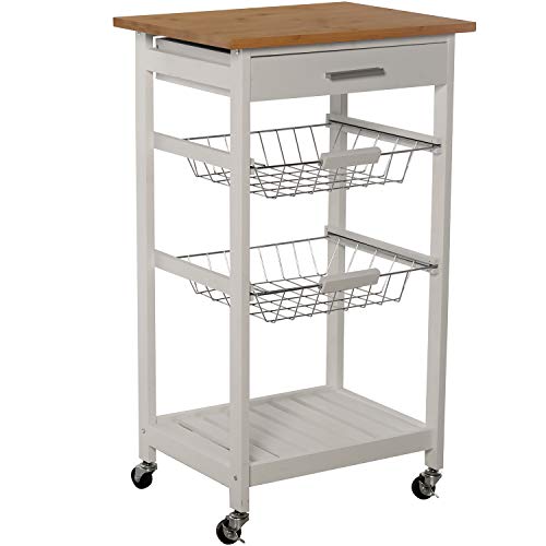 DRW Chariot de Cuisine avec 2 paniers et 1 tiroir en Bois Blanc 47 x 37 x 86 cm
