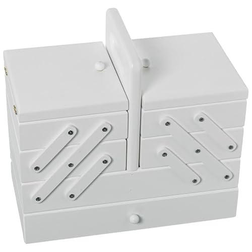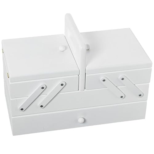 DRW Boîte à couture extensible type accordéon avec tiroir en bois blanc 26 x 28 x 15 cm
