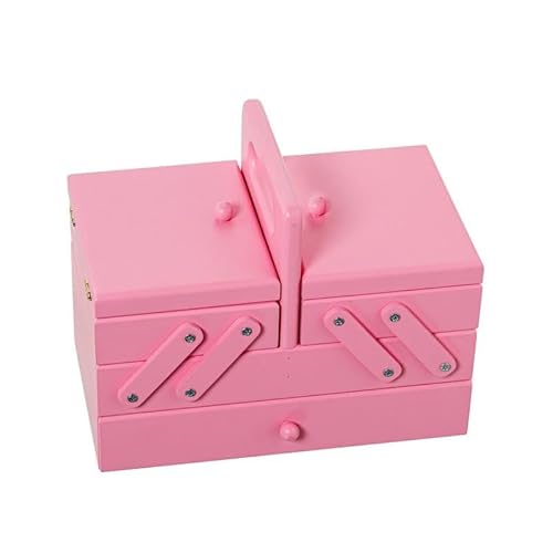 DRW Boîte à couture extensible type accordéon type accordéon avec tiroir en bois rose 18 x 23 x 14 cm