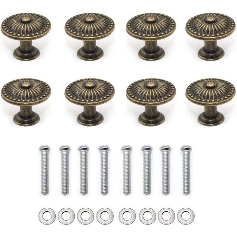 8 boutons meuble antiques bronze, pour armoire, tiroir, porte, placard, penderie, avec vis