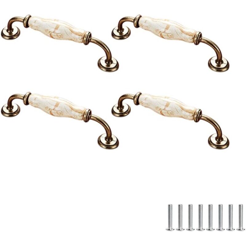Lot de 4 poignées de meubles, en céramique, style vintage, motif floral, pour porte d'armoire, tiroir, penderie, tringle à vêtements, 128 mm