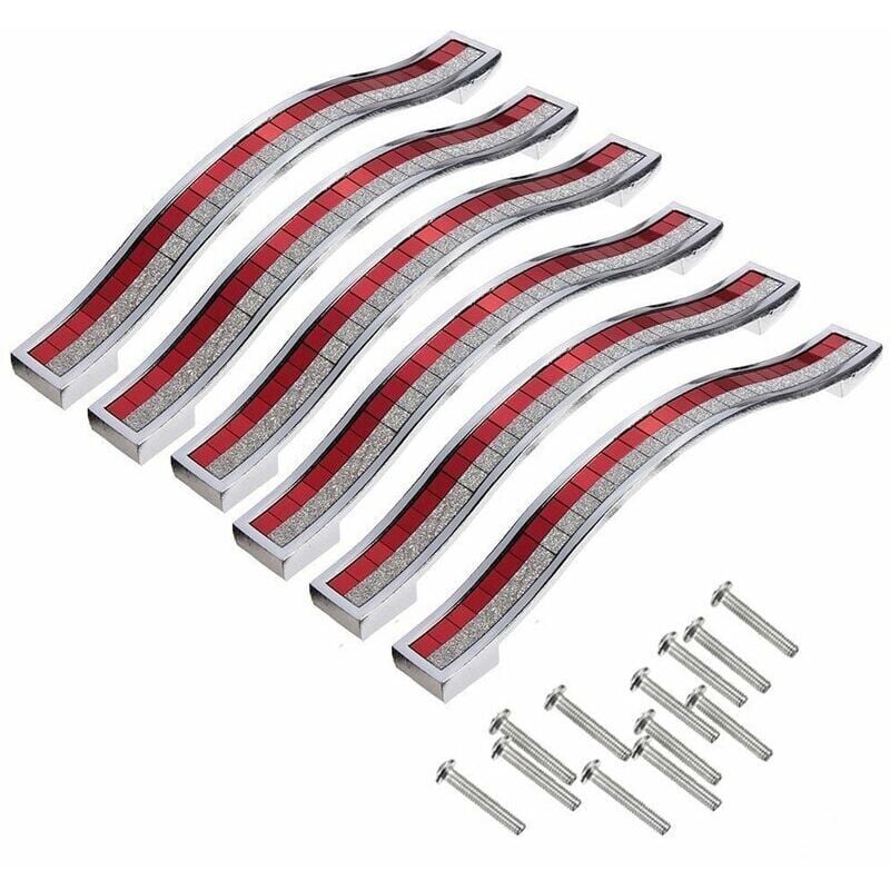 6pcs 96mm Poignée de Porte Cristal Decoration Bouton de Porte Bouton de Meuble Pour Meuble Tiroir Placard Bin Penderie Armoire,Argenté Rouge