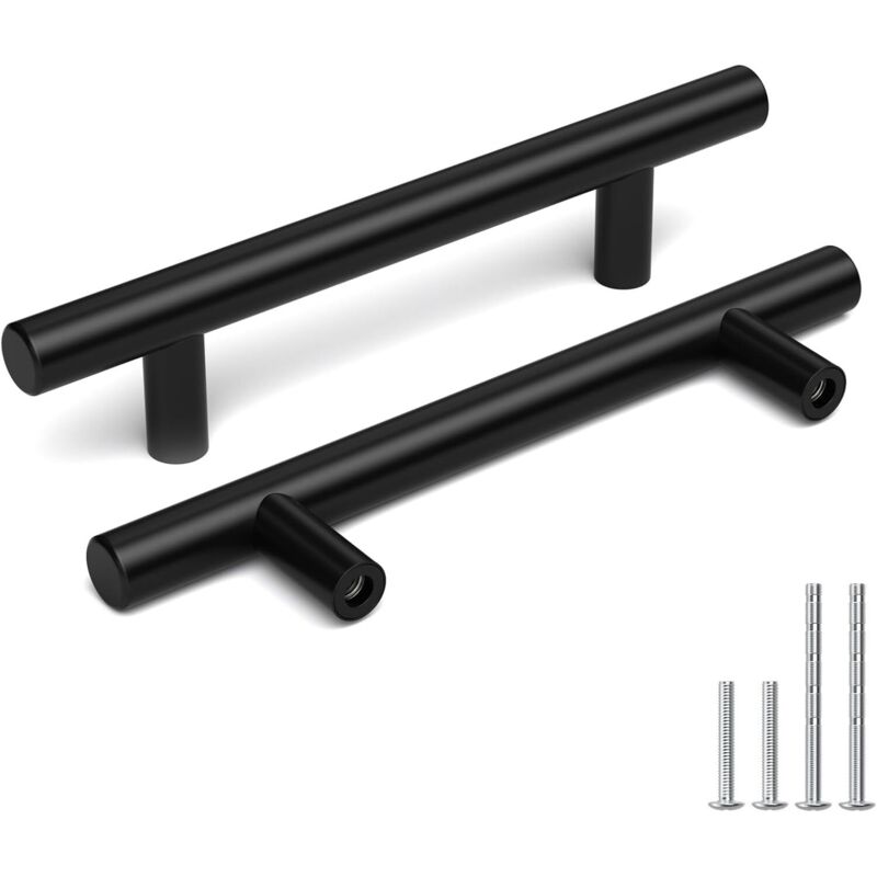 Lot de 5 poignées de meubles en acier inoxydable, 96 mm, modernes, noires, pour armoire, tiroir, cuisine, penderie