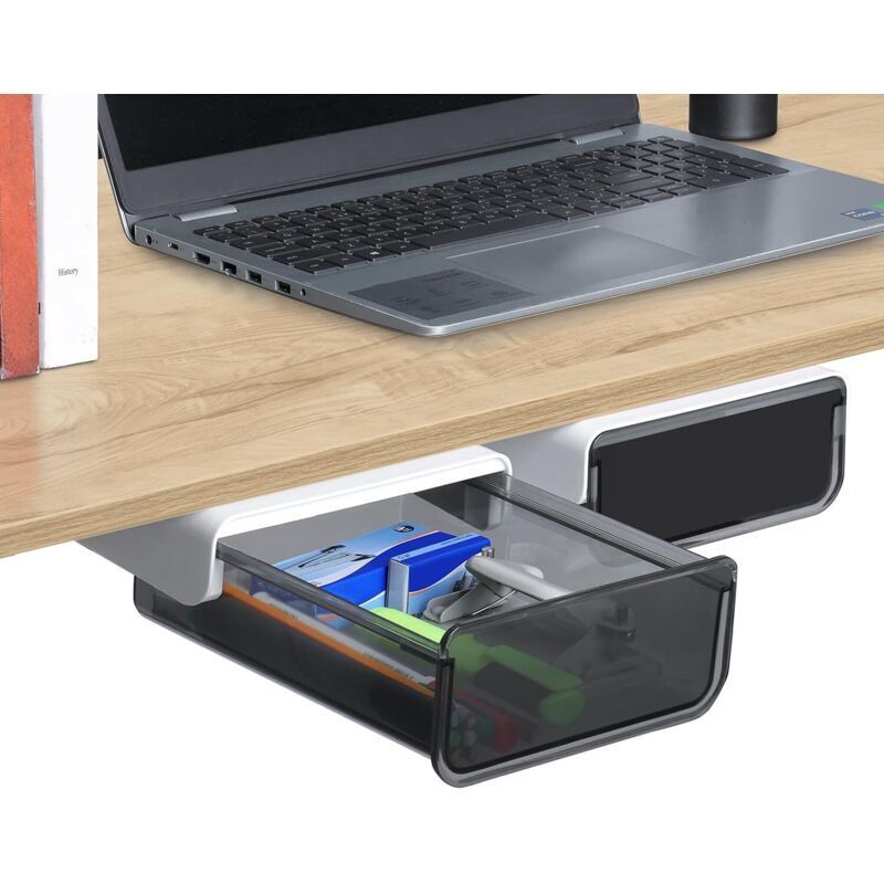 Tiroir de Rangement Autocollant Tiroir Caché Sous le Bureau, Tiroir Sous Bureau Boîte de Rangement Pour Table (noir transparent) - Ahlsen
