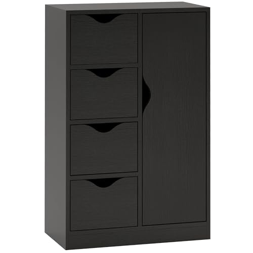 HOMCOM Meuble de Rangement Buffet Commode Moderne 1 Placard et 4 tiroirs - en Bois - pour Salon, Cuisine, entrée, Salle à Manger - Noir