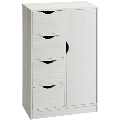 HOMCOM Meuble de Rangement Buffet Commode Moderne 1 Placard et 4 tiroirs - en Bois - pour Salon, Cuisine, entrée, Salle à Manger - Blanc