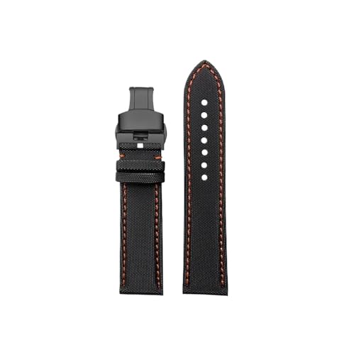 Srndsydak Bracelet de montre en cuir et nylon Compatible avec Longines Heritage L2.838/Tissot/Seiko/Casio/Omega 20/21/22/23/24mm(Black Orange-Black Folding,24mm)