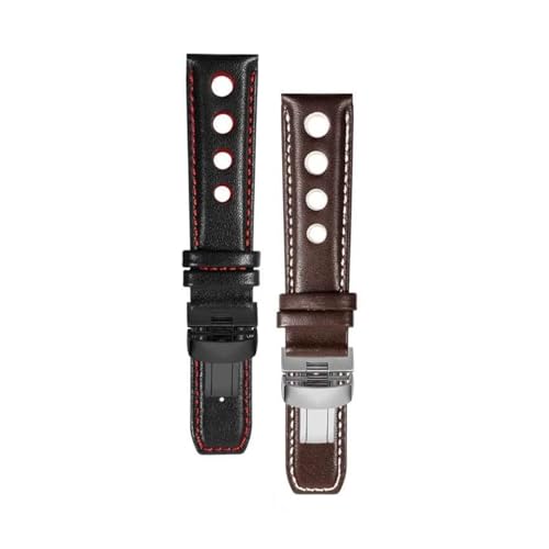 HuanJ Bracelet En Cuir Véritable Compatible Avec La Montre De Sport Tissot 1853 Racing PRS516 T91, Bracelet En Cuir De Vachette De 20 Mm, Accessoires(Black red no)